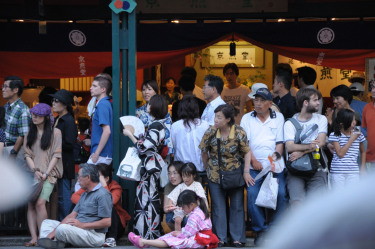 京都の祇園で祭りに遭遇した。